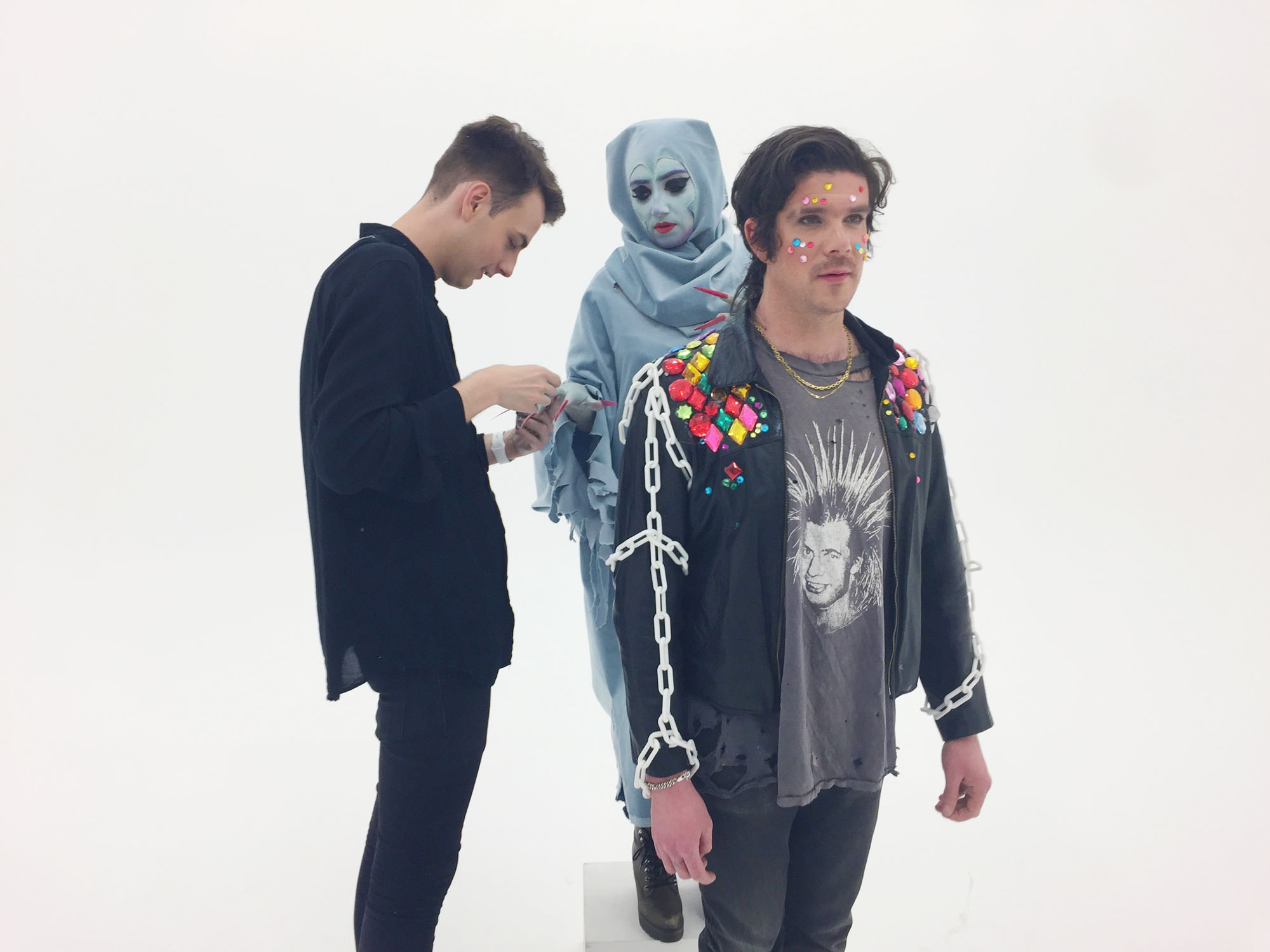 For many years Simon O’Connor has been floating around the New York music scene, being in bands, making records, and being a charming guy. His newest band, Simon Doom, released their first record Babyman this past Friday. It’s out on Votiv Records and it’s great (buy it here). It sounds big and timeless and like something from the English post-punk sad romantic pop era of the early 1980s. Ben and Andrew from MGMT produced the album and you can hear the level of quality they bring to everything they do sweating out of every fun and pretty track on the record. While Simon and I were drinking at my house a month back I volunteered to make a music video for him and he said, “OK,” despite my never having made one before and there being no budget. We rallied some pals and did our very best. I directed and made the costumes. Justin Nge shot and edited it. On makeup and styling we had Jacob Hill. Anni Rossi who sings the chorus in the song plays the ghostly and mysterious Blue Woman character and Simon plays himself. Noisey agreed to premier the video and now here we are. Simon and I interviewed each other about the video and the record and this is that.