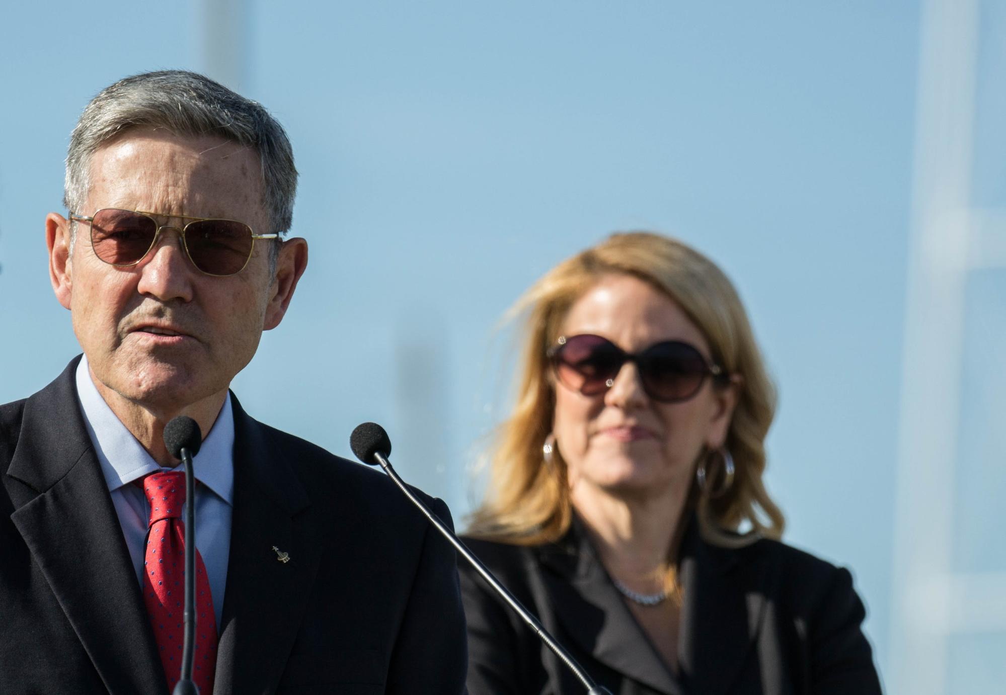Director of Kennedy Space Center Bob Cabana and SpaceX President Gwynne Shotwell discuss the future of Launchpad 39A on Friday. Image: Daniel Oberhaus/Motherboard