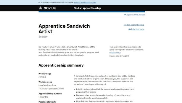Initially found on the UK government “Find an apprenticeship” website, the “Apprentice Sandwich Artists” job posting has since been taken down amid a flurry of criticism, mainly because £119 per week (just under $150 USD) essentially amounts to exploitation.