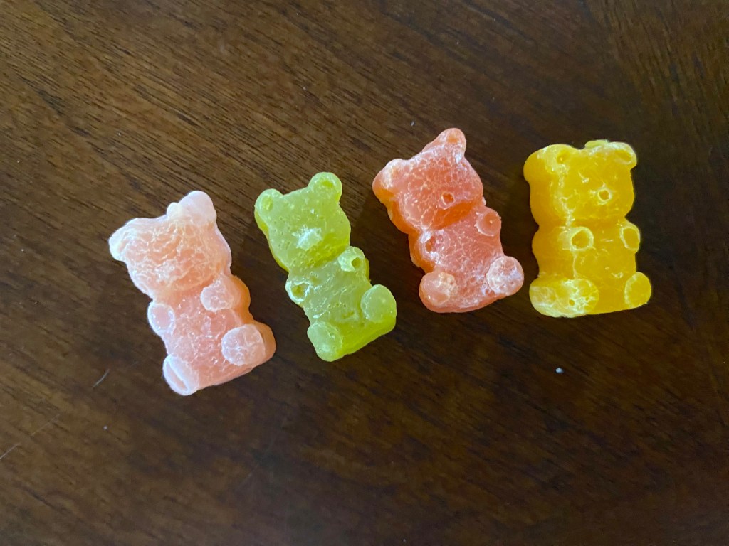The gummy bear shape is adorable and makes them a bit more fun than your average CBD gummy. Maybe that’s just me. And the texture is soft and yielding with a subtle powdery feel on the outside. They’re not especially chewy or firm, so you can chew them quick and get to the chill feeling sooner.