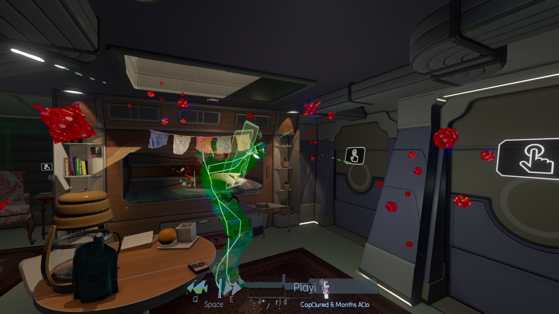The great message of Tacoma is that humanity shines through even when technology strives to suppress it. It’s fitting that you never actually see humans in Tacoma; in fact, the most you see of Amy is the boots and gloves of her spacesuit. Instead, she watches the colorful “ghosts” of the crew; the recordings of their movements and conversations as recorded by the ship’s all-monitoring AI for playback in Amy’s augmented reality device. She can scrub backward and forward in time, thus allowing her to dig through the virtual “desktops” for each crewmember and allowing for featherweight puzzles that rarely amount to more than watching crewmembers enter important passcodes.