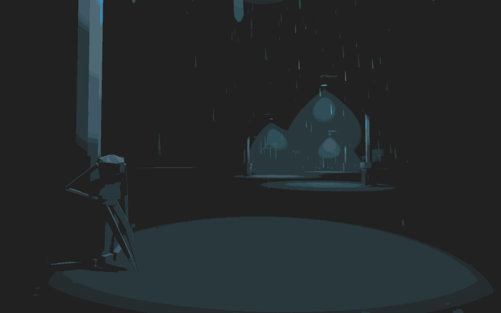 It’s a short, atmospheric mood piece. Despite its focus on inclement weather, and its cool color scheme, all grays and blues, it’s a warm, comforting experience. You walk around in the rain, talking to people about the weather. Everyone tells you to stay in the light—under lamplights, by fires, by the warm porchlight of a well-intentioned granny—but you can stray if you like. This is your walk.