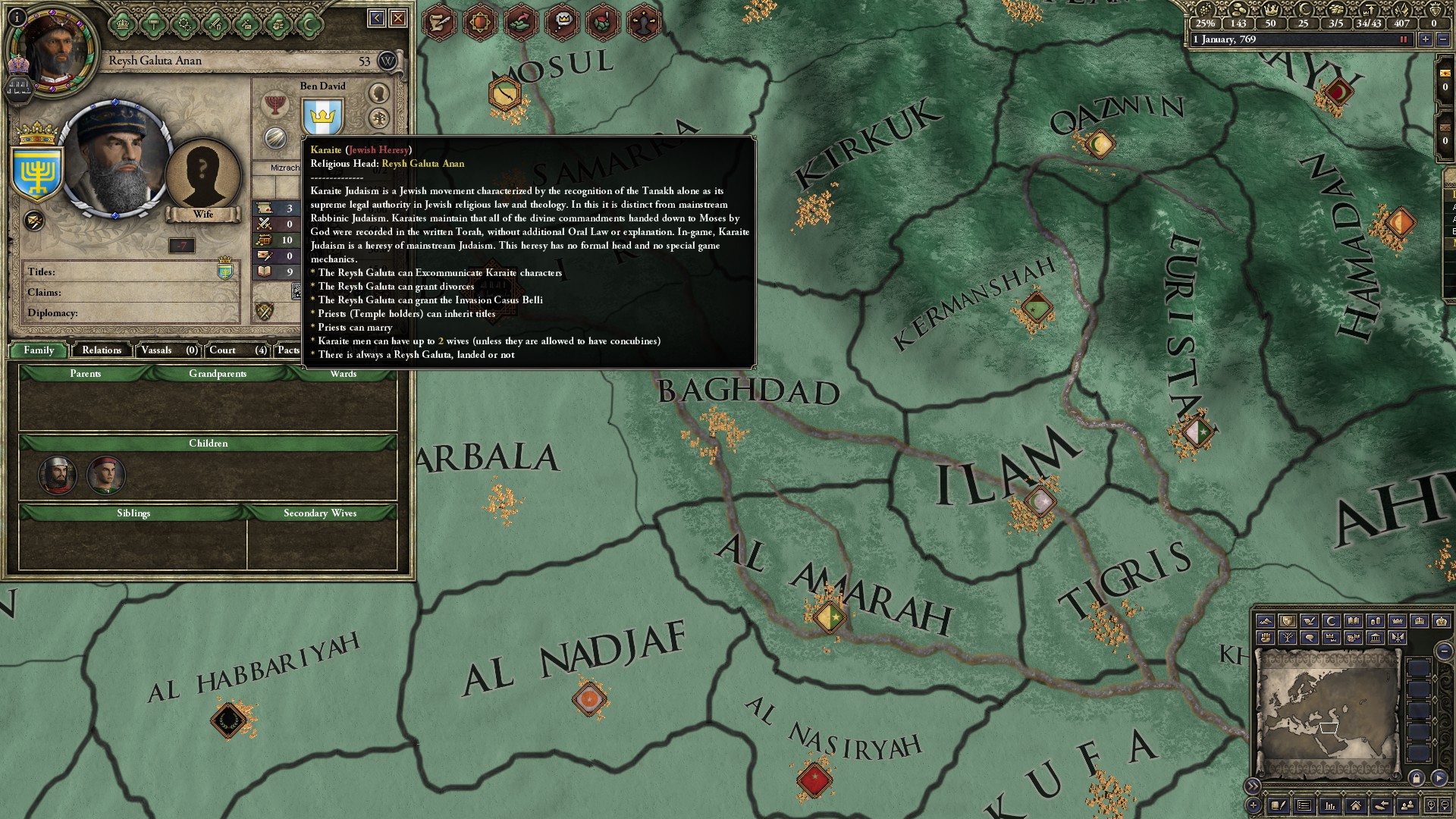 In comparison to big Crusader Kings II mods such as CK+, my mod is not so big. However, for people such as myself, the changes that I made were sufficient. An interesting fact: Originally, I wanted to name my mod “Idishe Melkhim,” the Yiddish form of “Jewish Kings,” but since no one would understand the meaning of it, I translated it to English.