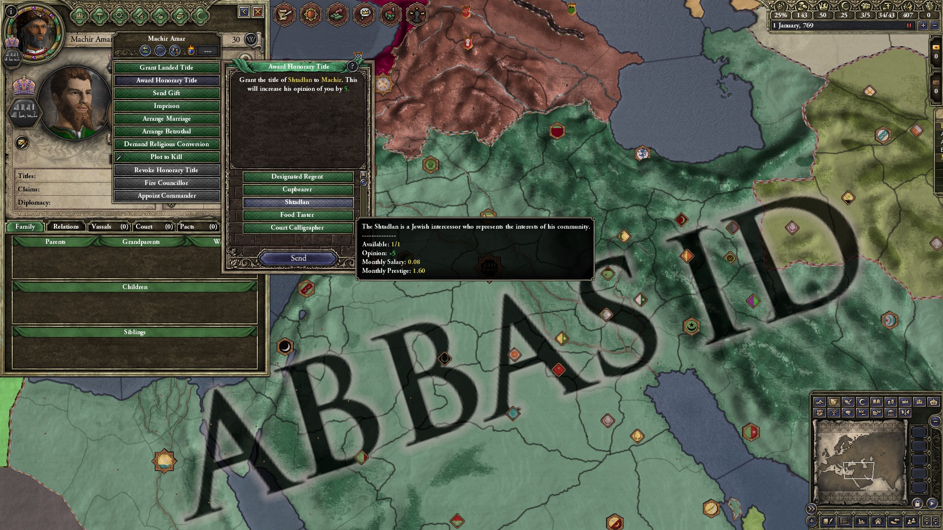 Jonathan: Crusader Kings II does have Jewish characters, but most of them are not playable, and the few who are are—the Khagan of Khazaria and the Duke of Semien, to be specific— easily get destroyed by neighboring empires, and anyway are not very fun to play. I decided to add more options for playing as a Jewish character, such as new and unique decisions and events. In addition to making the Jewish character experience more in-depth, I added events for non-Jewish characters. For example, different kinds of Jewish courtiers can arrive at the court of a non-Jewish character. A non-Jewish ruler might be confronted with a migration of Jews to one of his provinces, and will have to choose either to accept them or not. Historically, sometimes European lords had to face tough decisions like this one. I added this event and others like it to make the experience more extensive and immersive.