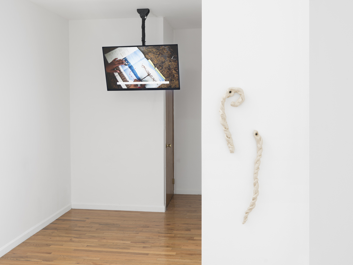 I’m gonna be back and forth because I have to go back for my teaching job, but when I’m down here, yeah I’m interested. I’m not gonna ask these folks [the gallery owners/attendants] to perform as not-themselves when they’re here, but I like the idea of this measured capacity to be ironic in terms of how I talk about social inequities or race. I feel like oftentimes as a black woman making video art, to have my body on the screen, people expect me to be describing the work with a lot of sincerity, in terms of its own oppression, like explaining why it’s there in the first place… Maybe the moral of the story is just around the corner. I like adopting this end of the lens built into the piece. This capacity to also have a level of self-deprecation, that’s one brand of really true freedom: When you have the chance to make fun of yourself. We see so often how reified power mocks itself, almost to affirm its power. So sometimes I think, How can I put the images I want to see in the world out into the world via the work? My mom quite often in her life never felt like she had the chance, or opportunity, or space to be frivolous.