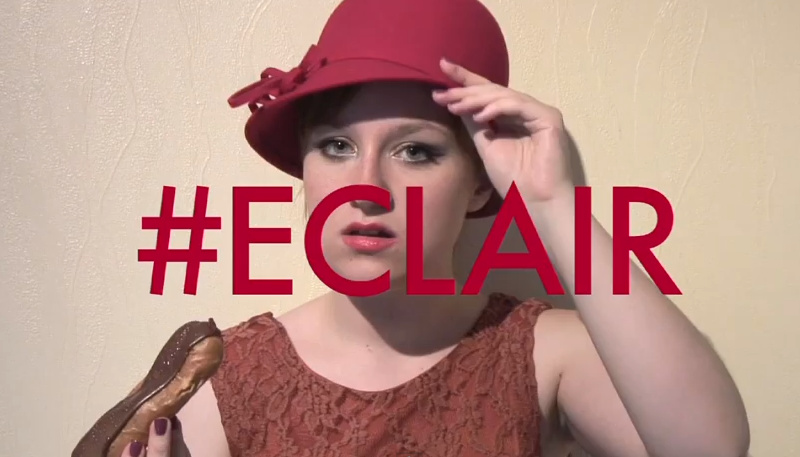 You can look at this two ways. Either the eclair is a SUPER smart jab at a #patriarchy which forces women to eat dust and quinoa in order to keep their slammin’ figures. Or she’s just being #kooky and including a #random object for a cheap LOL. IDK, it’s a toughie.