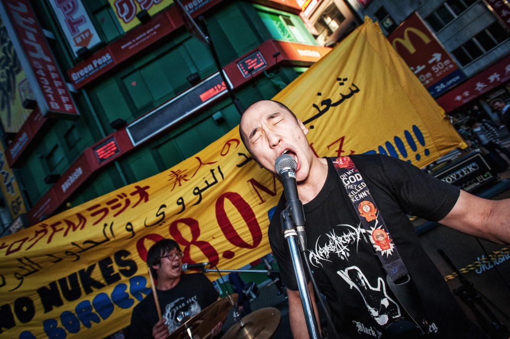 Jung’s documentary, which premiered stateside at the New York Asian Film Fest earlier this month, begins with a scene of imminent destruction. The two men, vocalist and bassist Jang Sunggun and drummer Kwon Yongman, look through a condemned building for discarded objects they can smash up during their performance that night; the venue is the very same building, slated to be demolished the next day. The unconventional band started in the mid 2000s, and by the early 2010s had become a mainstay of many South Korean protests, hyping up everyone from workers demanding better working conditions to students demanding cheaper, public higher education.