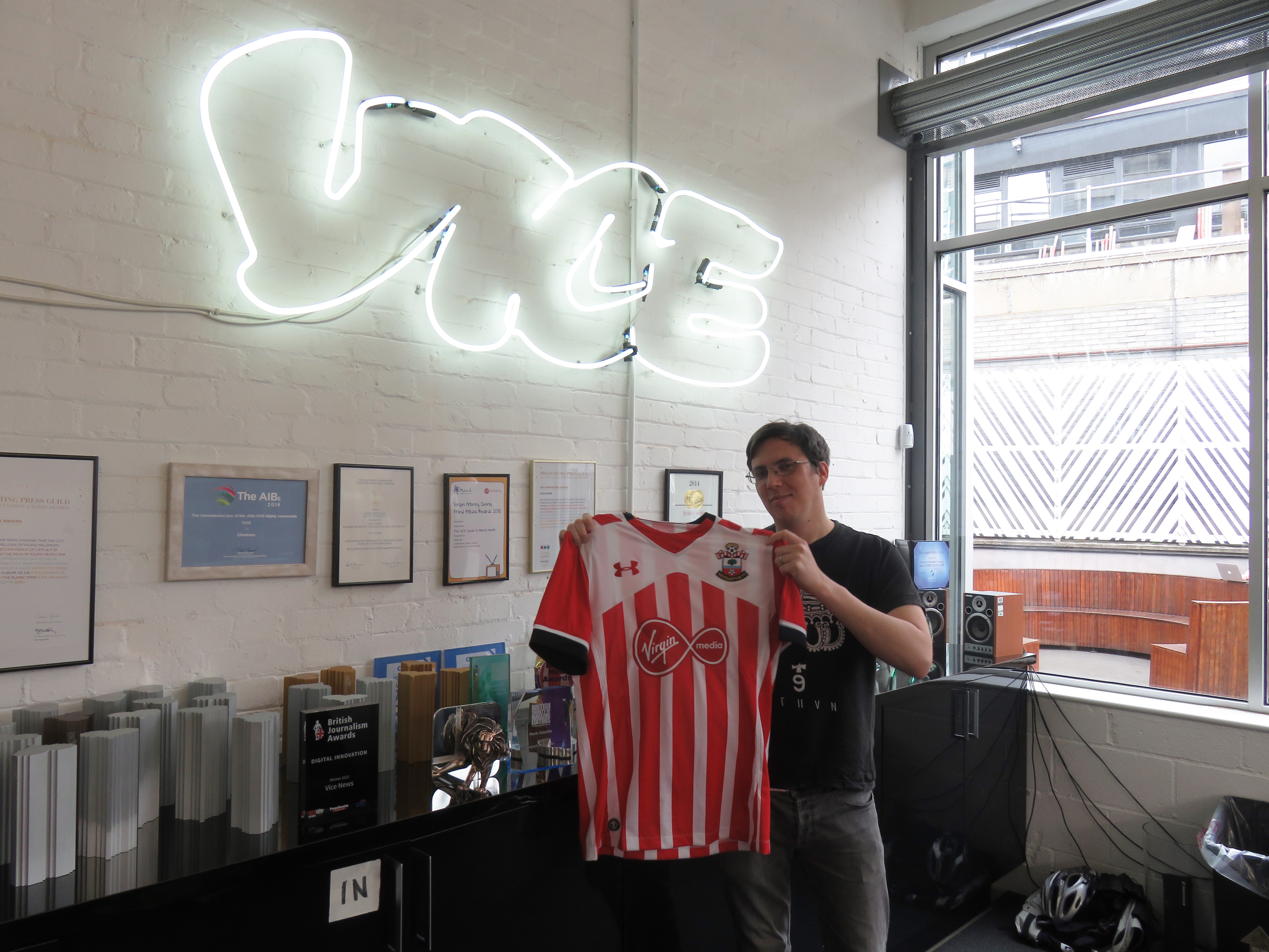 The Saints fanbase includes VICE’s very own Mike Diver, who works from the UK office as senior editor for our gaming channel, Waypoint. Asked about St. Mary’s, Mike described “a very ‘polite’ stadium. Everything’s where you need it to be, getting in and out is quite easy. It’s not particularly salubrious, but once you’re inside it’s the standard-issue concrete breeze blocks, expensive beer…”