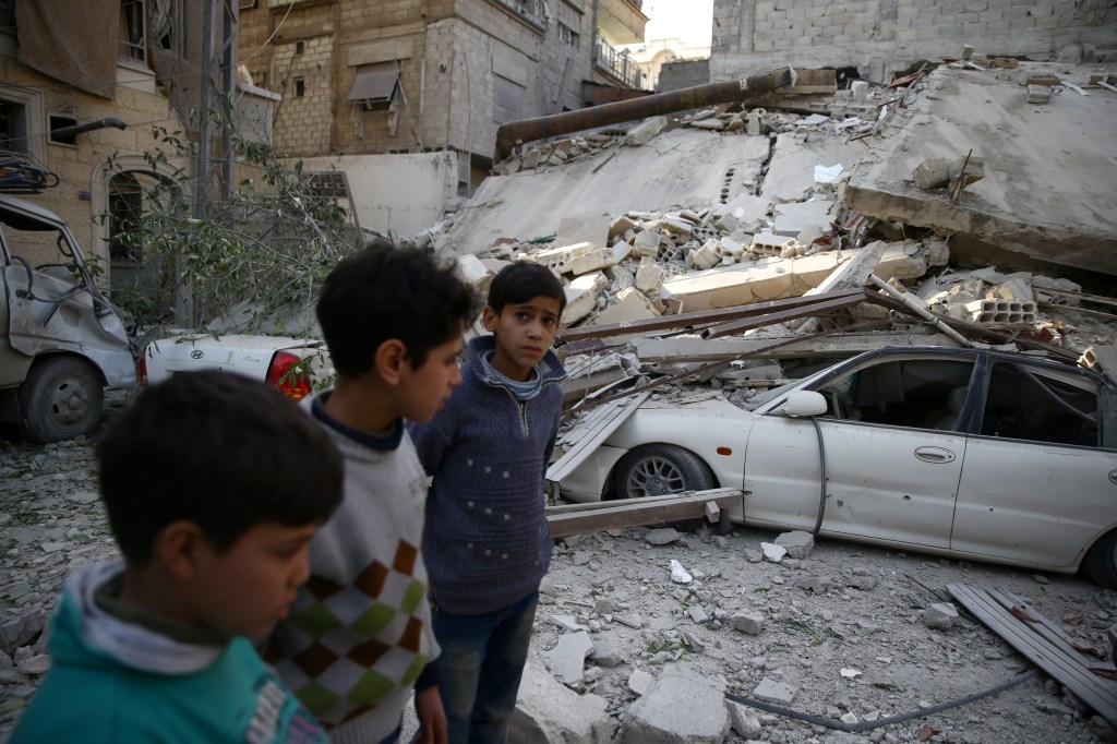 Cover image: Children are seen near rubble after an air raid in the besieged town of Douma in eastern Ghouta in Damascus, Syria, February 6, 2018. (REUTERS/ Bassam Khabieh)