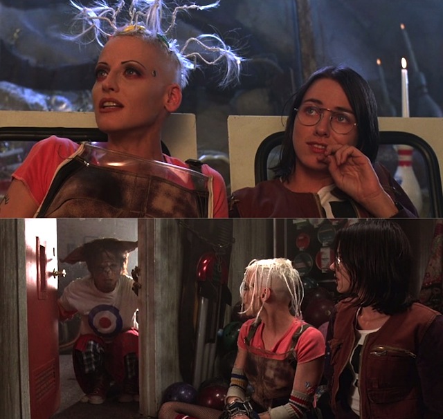Although it is interesting that one of the first songs we hear while watching this film is Devo’s “Girl U Want,” the lyrics to which feature the line “She’s just a girl / She’s just a girl,” while the opening lyrics to No Doubt’s huge 1995 hit were, you guessed it, “I’m just a girl.” Look, all I’m saying is that it makes me really happy to think of Gwen Stefani watching a VHS of Tank Girl over and over in her teen bedroom in Anaheim and being totally inspired by it, to the point where she did pretty much became the living embodiment of that Rebecca Buck. especially to suburban girls like me who wanted to mosh at punk shows and wear crop tops and the baggiest jeans possible and maybe try out a bindi… before we realized it really wasn’t cool to re-appropriate someone else’s culture in order to try and make out with a boy in a band.