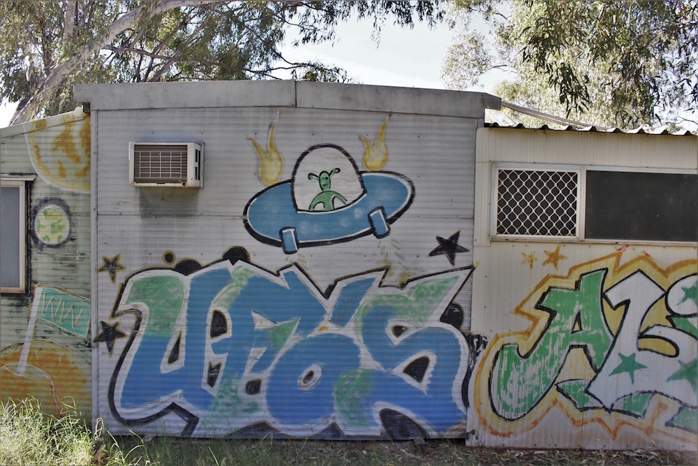 There have been UFO sightings around Wycliffe Well for decades. Google it and you’ll find lots of stories, and even more theories. My particular favourite is that these unidentified objects are attracted to Wycliffe because of its cosmic alignment of landforms, tectonic plates, and manmade structures, which emit a type of UFO-friendly energy. Another is that the US military intelligence base Pine Gap is just nearby. So, you know, aliens.