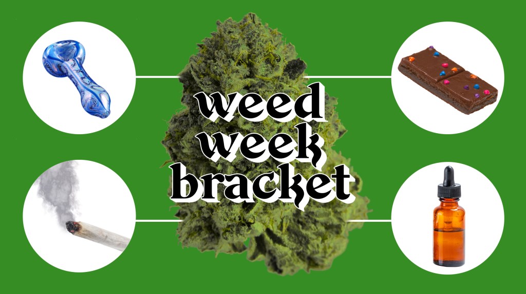 Time flies, 4/20 is tomorrow, and we’ve reached the final four in our weed week bracket, where we’re letting readers decide, through the power of democracy, the best way to get high. Here are the marijuana ingestion methods that remain in the hunt for the national title: