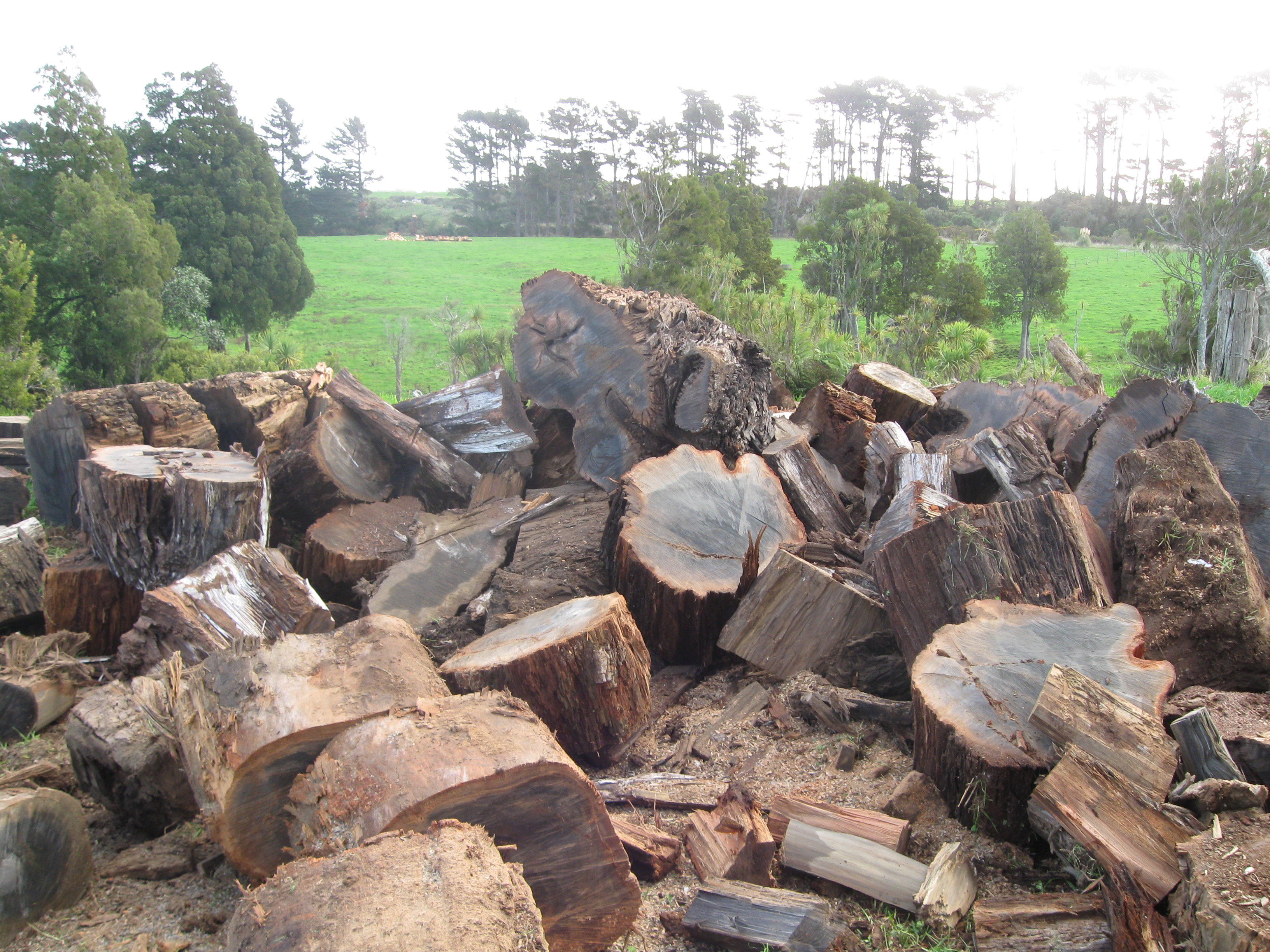 We bumped along down towards the river then back up the hill again. On the top of an incline, just above the bush and the rusted rim of a car, a tattooed man chopped up large, black rātā logs. Karl used the logs for firewood. They burnt really well. ‘If you dig down deep enough here, you’ll find natives,’ Karl explained.