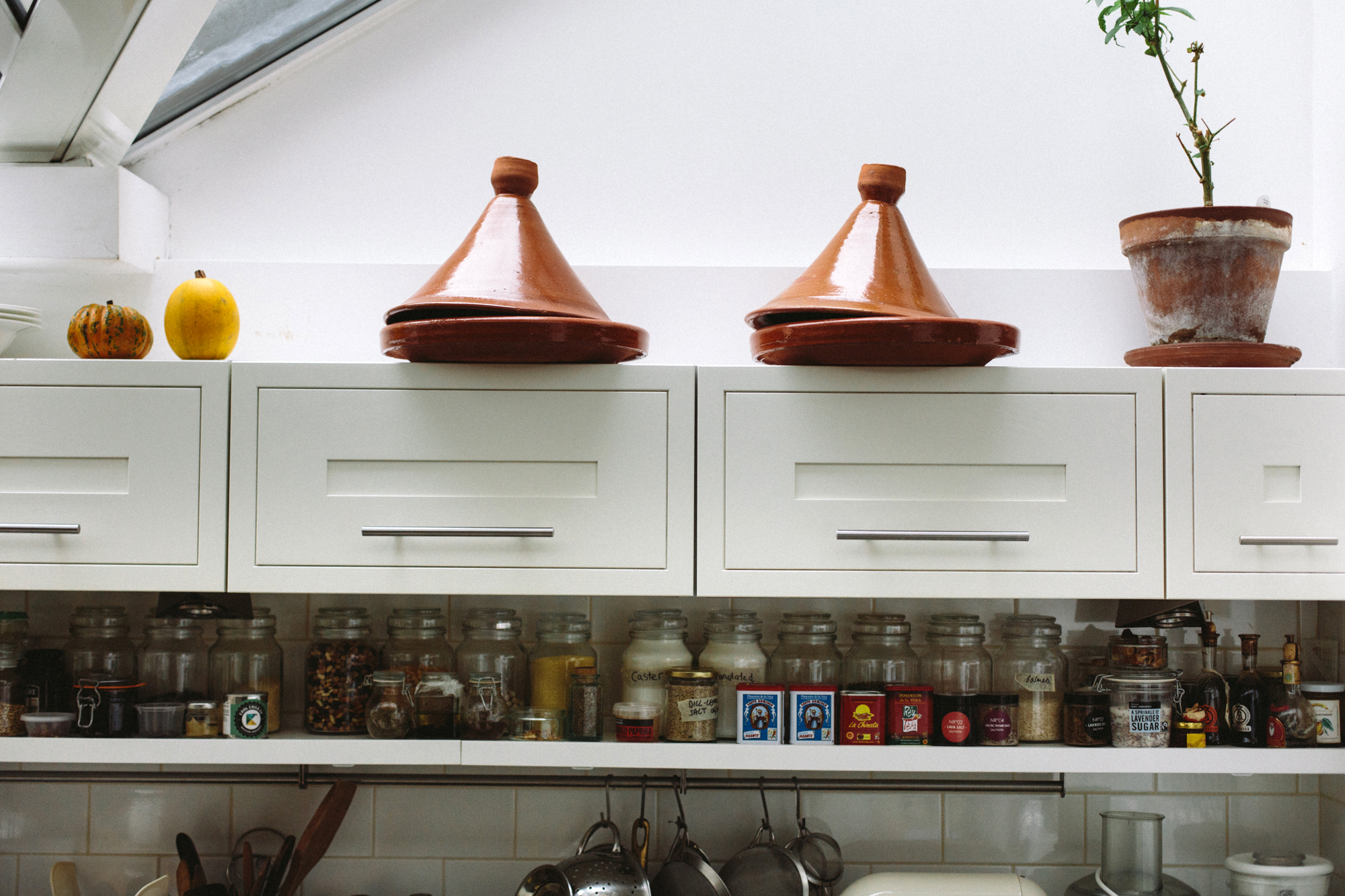 The shelf above Anna Colquhoun’s North London kitchen table is a neat history of the round-the-world food journey she took with her husband in 2008. There’s a plastic kettle from West Africa, a Hungarian earthenware pot, tagine dishes from Morocco, and a terracotta vessel she found in Turkey, used for cooking stuffed vine leaves.