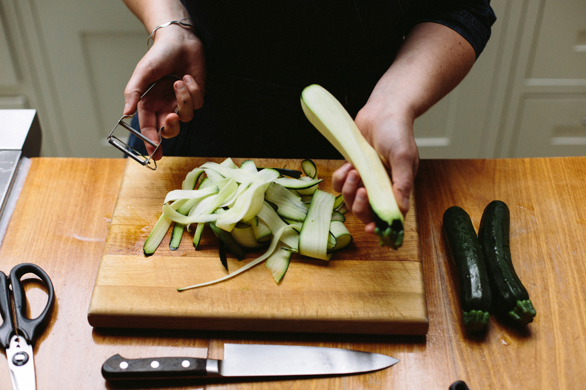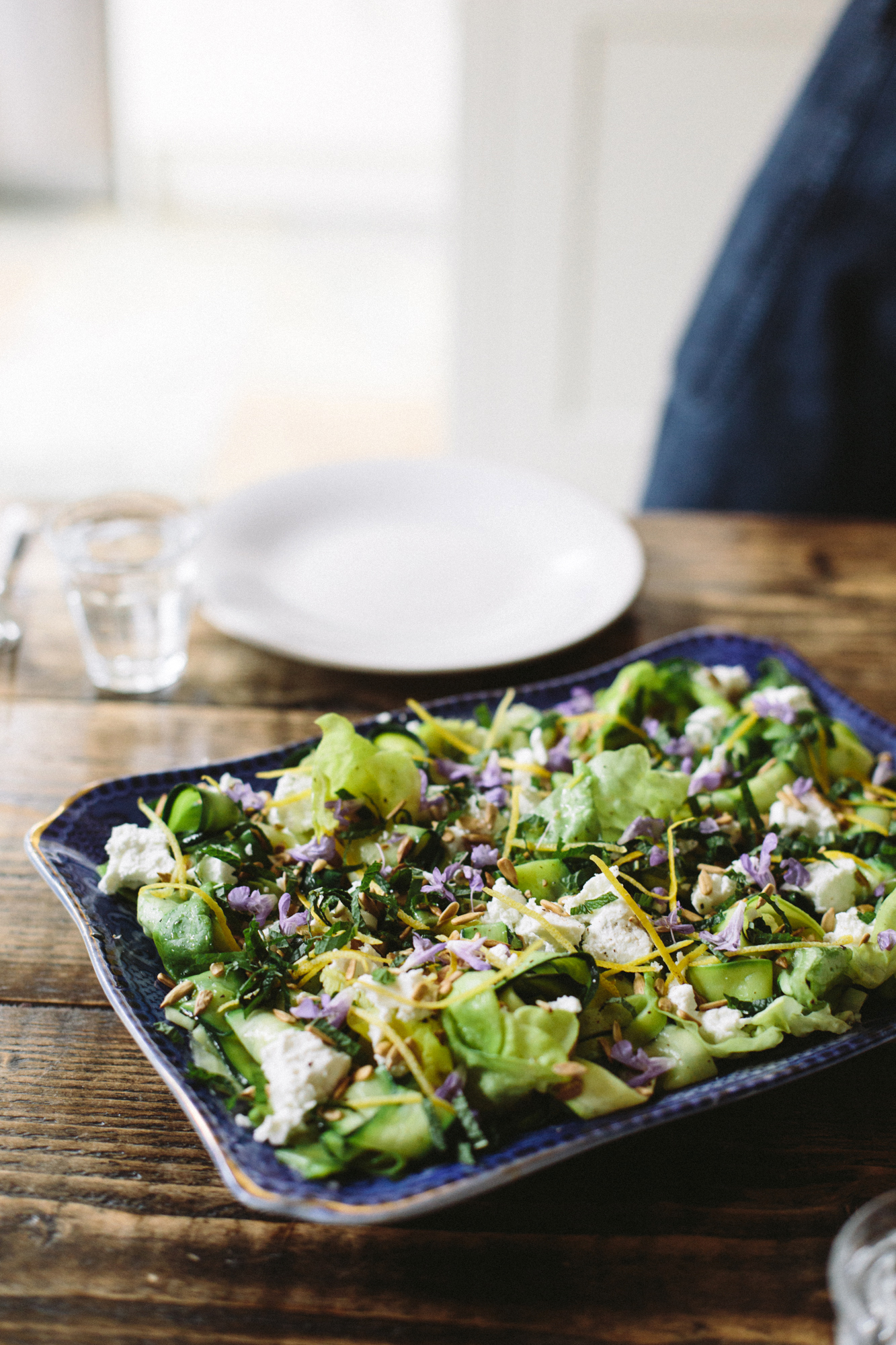 But for today, an afternoon in early summer, we’ll be making a butter lettuce, courgette, and goat cheese salad.