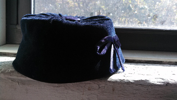 VELVETEEN FEZ WITH BOW (LADIES 1960s PILLBOX)