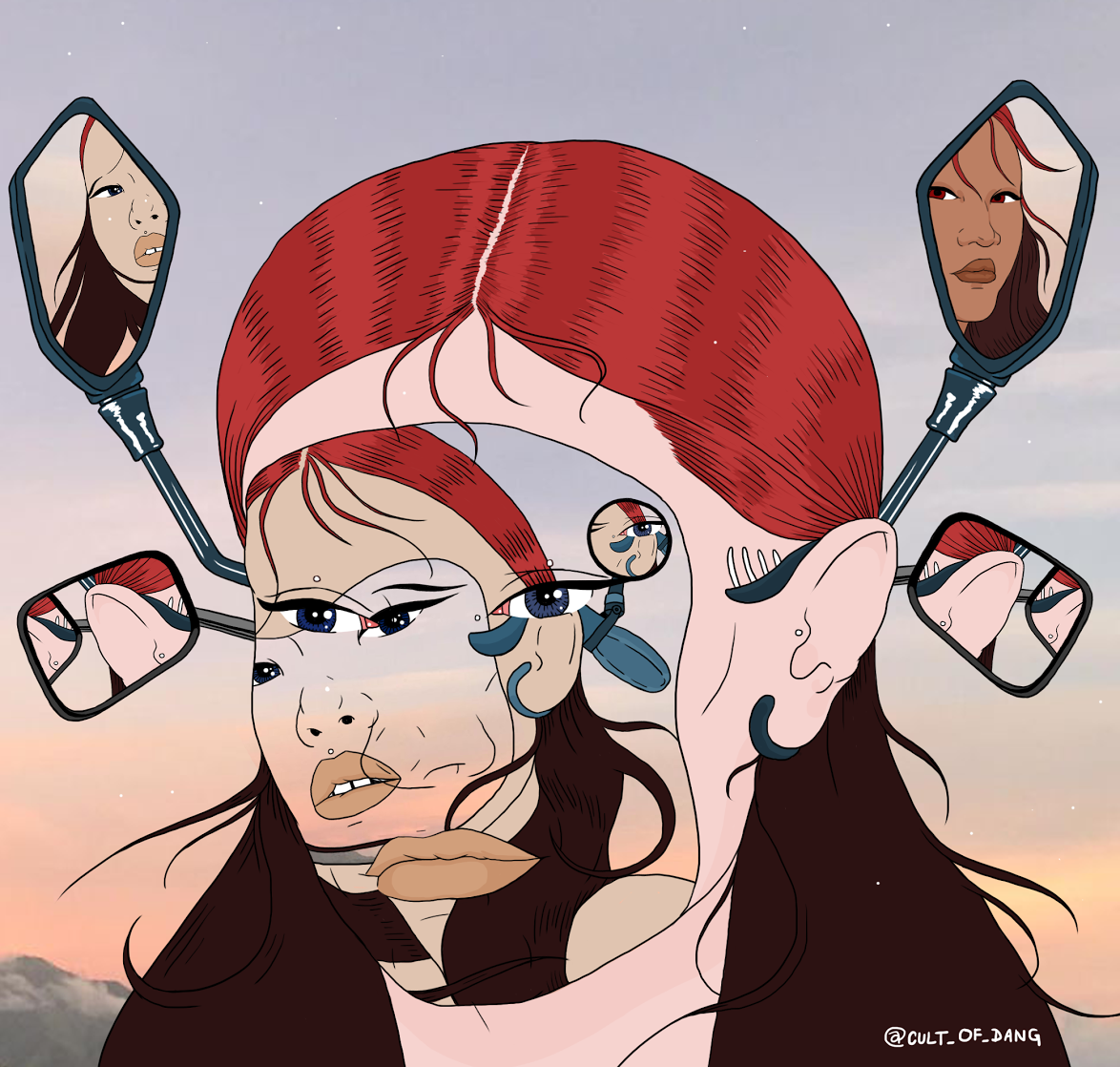 It should come as no surprise that the artist is an avid reader of stories about women escaping abuse, fighting the patriarchy with martial arts, and taking back control over their lives. Switching back and forth between illustration and animation, Cult of Dang keeps their strong cyborg, surreal style in her works. “Illustration is more limiting than animation, for me, these days. It’s hard to settle for complete stillness but there’s also a beautiful mystery in not giving away too much,” Cult of Dang says.