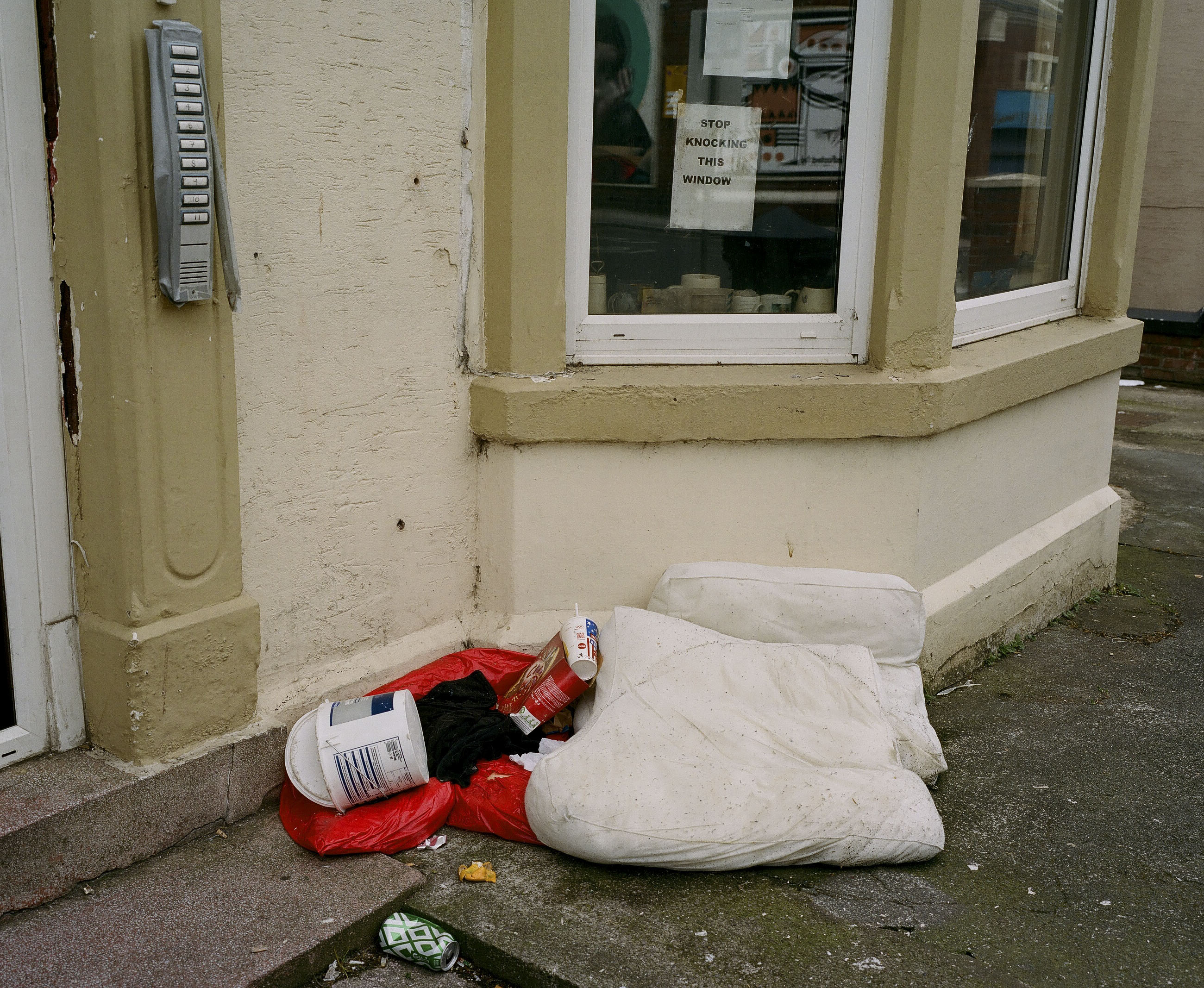 Looking out over the railings of Blackpool’s central pier, it’s true that there are plenty of reminders of the town’s glory days. To the north is the famous tower, rising above the beach where two children splash through the gently rolling waves. To the south is Pleasure Beach amusement park, where cries ring out from the Big One as carriages cascade around the roller coaster’s rails. But also, just a few metres away, a young man wrapped in a red sleeping bag shifts position as he tries to sleep on the bench below.