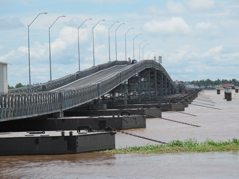 Parker Shinn: A pontoon bridge is basically a series of barges, or closed pontoons, that are anchored in place, and then you can build a bridge across them. So each pontoon acts as a support. Historically, they’ve been used by militaries for over a thousand years, and they’re still very commonly used. The reason they’re so frequently used by militaries and wars and other times is because they can be constructed very rapidly.