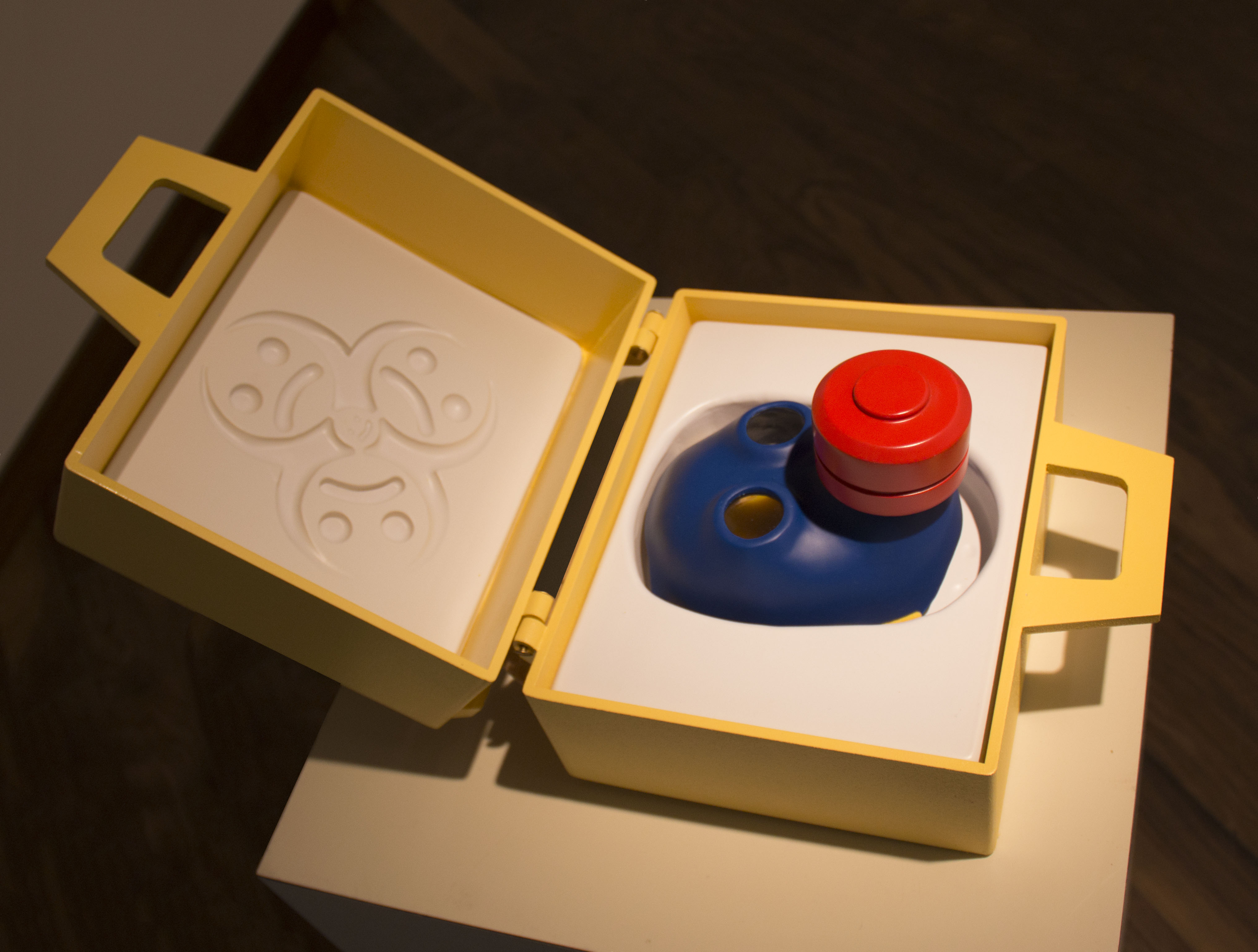 Oh, good. I try to evoke that feeling. Whenever I come up with a toy, no matter how ridiculous or offensive or strange, I always put into it a level of practicality. We used to have learning goals for toys. So when I designed the Automatic Fun piece I went in with the mindset of the target audience for this being one- to two-year-olds because that’s an audience you would never make an AR-15 for. So then I thought, Well, what’s the play value of this? I need to have a sliding bead coaster to do counting, a rattle that makes noise, a spinning wheel for the face, so that you get play out of it while you rock it back and forth.