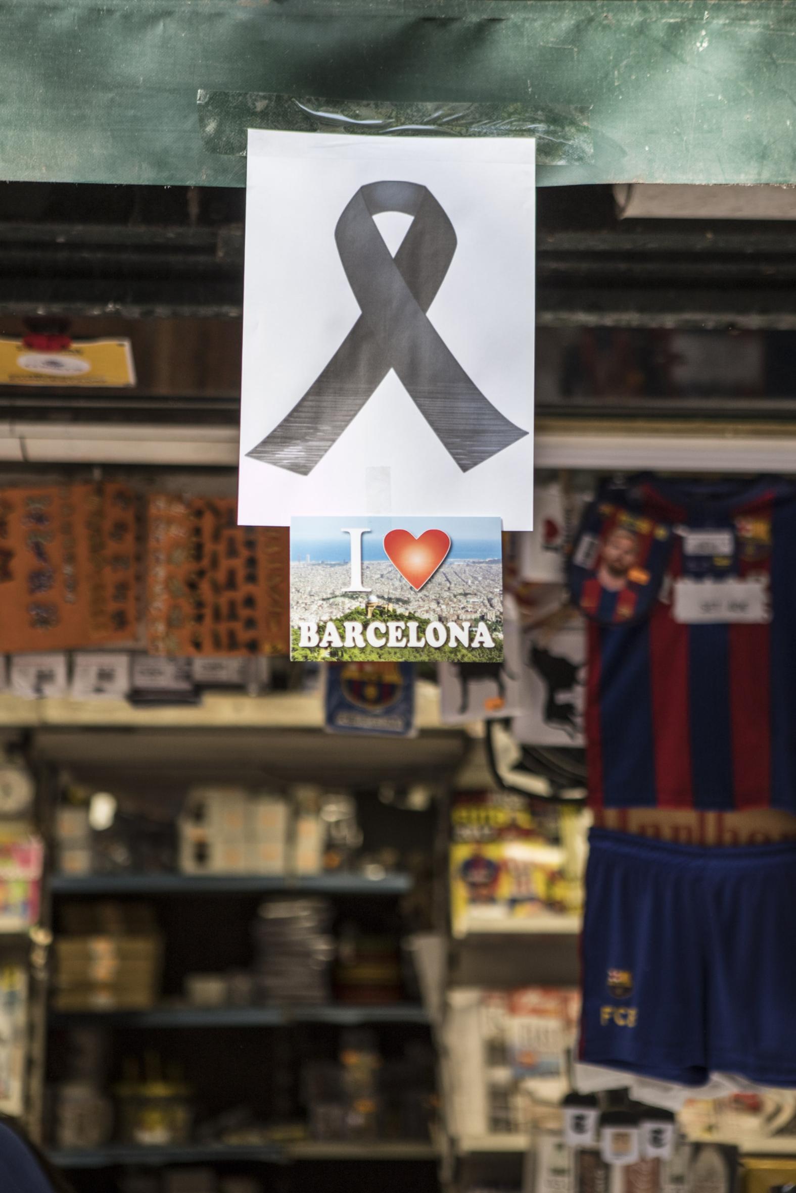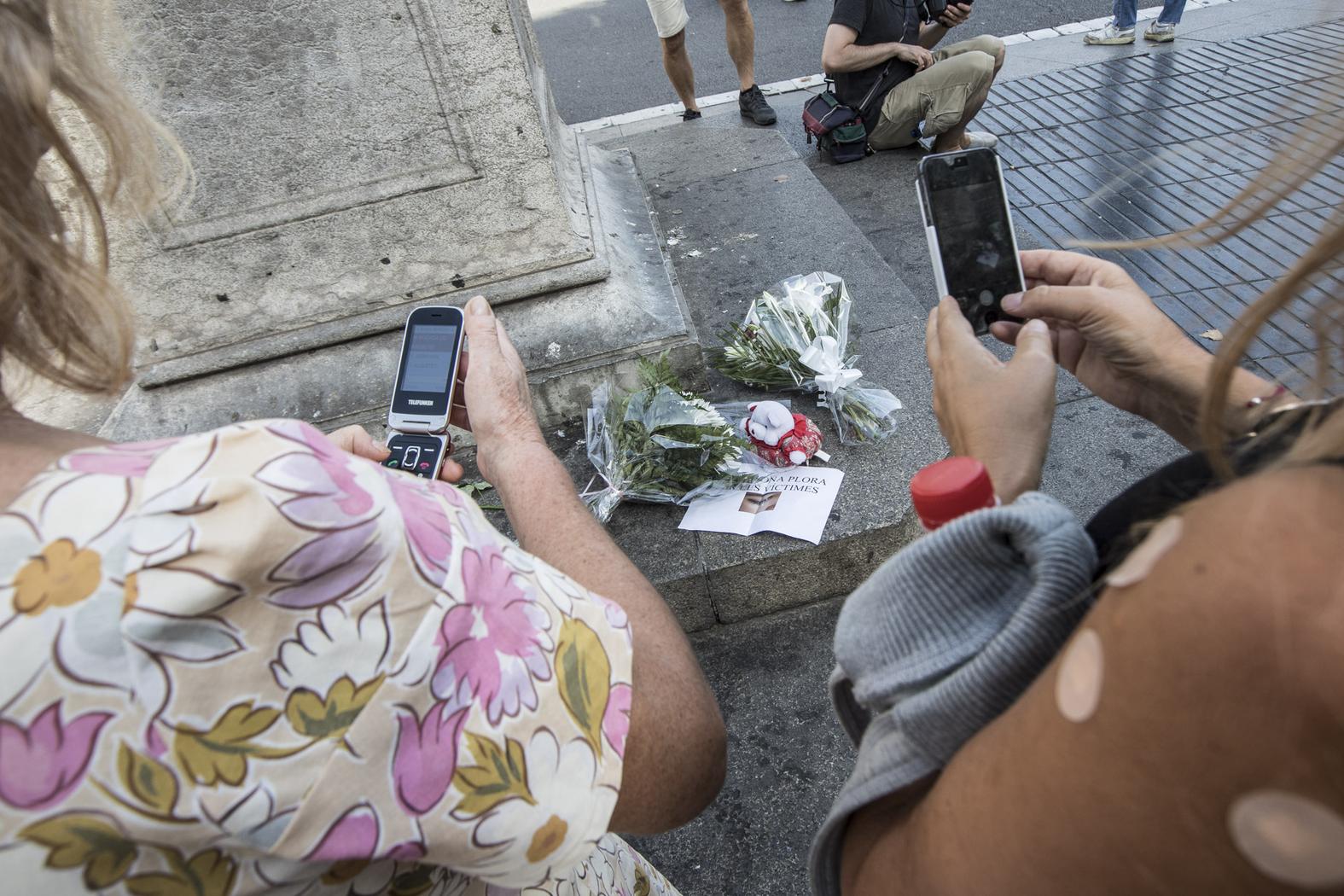 Flowers were laid and candles lit around the legendary Canaletas Fountain on Las Ramblas. Tributes in the shape of postcards and stuffed animals were left along the boulevard. The gathering fell silent at noon when a minute of silence for the victims was held at the Plaça de Catalunya at the heart of the city.