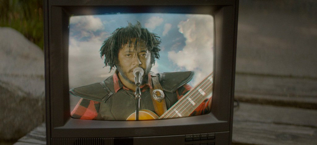 The basic narrative is that a seemingly pretty sad dude – the samurai who had his arms sliced off in 2015’s “Them Changes” video, you may recall – is sent to ‘TKM Wellness’ (as in, Thundercat, Kenny, Michael) by his worried family. And via watching videos of the Holy Trinity – Thundercat, Kenny, Michael – singing into his soul, our beloved samurai finds joy again (this is signified by him wearing a poncho.) Directors Katarzyna Sawicka and Carlos Lopez Estrada say they ended the “Them Changes” video “on a fairly grim note but ‘Show You The Way’ offered a bright and contrasting soundtrack for a sequel of redemption”.