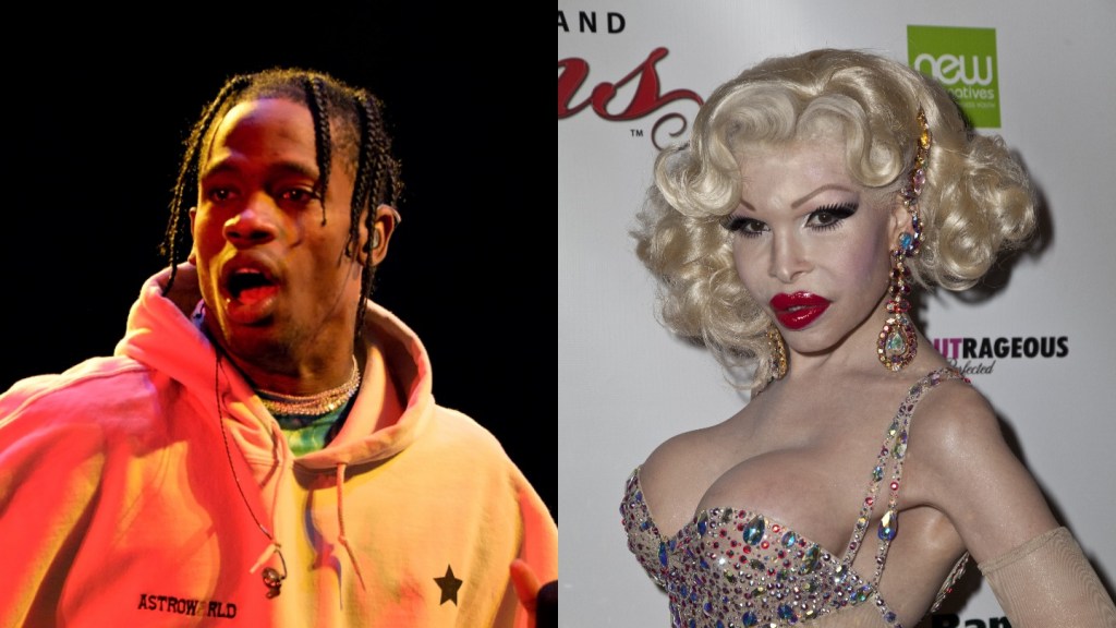 ASTROWORLD SZN is approaching, and as such, the Travis Scott hype machine has gone into overdrive, with various teasers, giant art installations and merch packages dropping. Earlier this week, Scott unveiled the David LaChapelle-shot art for ASTROWORLD, which features a giant golden Travis Scott head in some kind of cooked theme park, with various models and props posing around it. Fans were quick, though, to notice a key difference between the artwork Scott posted and the artwork LaChapelle posted. In LaChapelle’s art, trans icon and long time LaChapelle muse Amanda Lepore features in the shot; in Scott’s artwork, she’s been edited out.