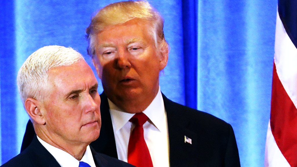 If Pence hadn’t agreed to become Trump’s sidekick, he would have faced an uncertain reelection campaign in Indiana. In accepting, he may have helped reassure social conservatives who doubted Trump’s Christian bona fides. Trump was also happy to have a man who looked like a cartoon version of a Republican politician onbaord. While Pence was giving his acceptance speech at the Republican National Convention, Trump reportedly remarked to Newt Gingrich, “Isn’t he just perfect? Straight from central casting.”