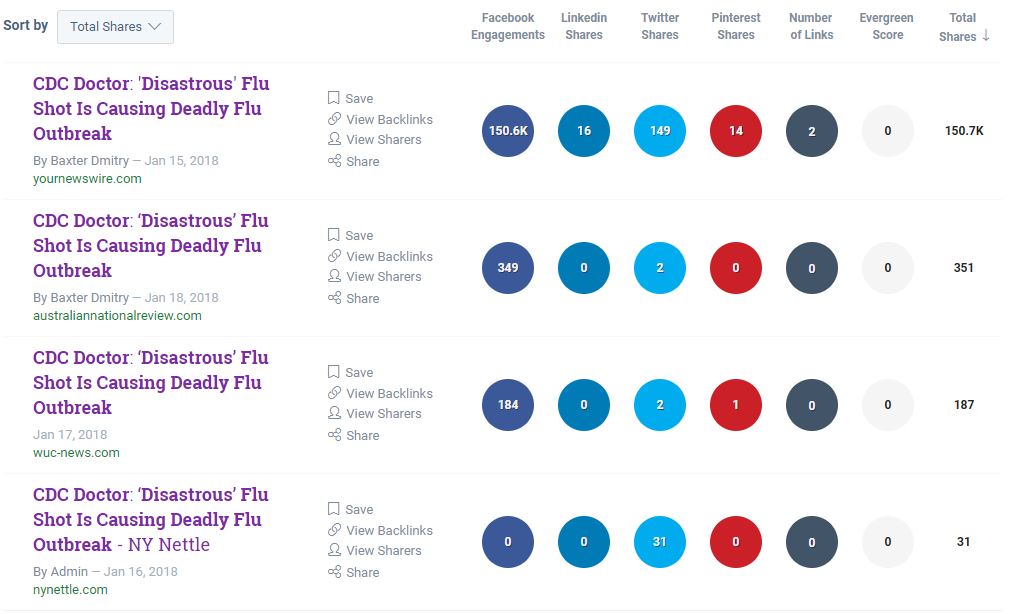 There is no truth to the central thrust of Your News Wire’s story. It is true that the flu this year is a somewhat nasty one, and has killed people who received flu shots, but the vaccine itself hasn’t killed anyone. This Your News Wire post, on the other hand, might kill people if it discourages them from getting vaccinated. As Media Matters pointed out to me in an email, the article got more than 150,000 Facebook engagements.