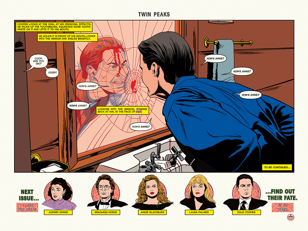 In addition to the art show, SPOKE NYC partnered with Tribeca’s Roxy Cinema for their special month-long Lynch takeover. They’ll play host to events like May 1st’s midnight screening of Twin Peaks: Fire Walk With Me. The exhibition will also include commemorative Twin Peaks postcards, stickers, and a custom-made photo booth of the famous Black Lodge Room.