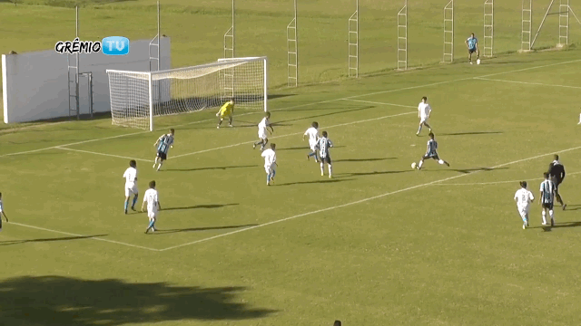 This clip comes to us from an under-14 match in Brazil between Gremio and Novo Hamburgo. Gremio were carving up the Hamburgo defense and looked to have a pretty goal set up when fate decided let’s actually make this even better. The initial cross gets passed back with a little backheel flick, setting up a surgically placed shot that didn’t quite curl enough.