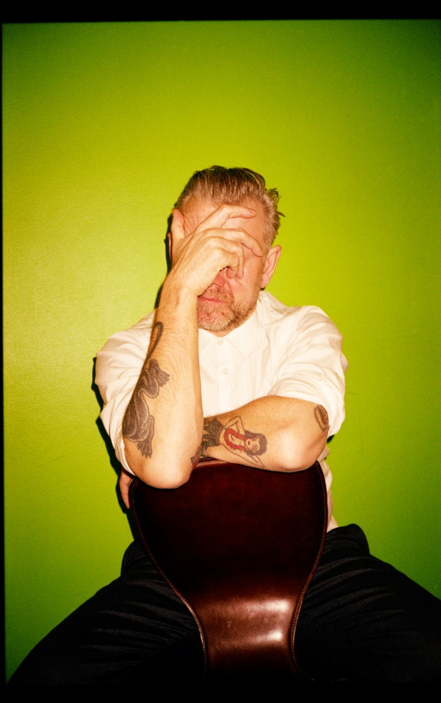 Og så så jeg et billede forleden dag, der blev taget for halvandet år siden, hvor jeg bare står i en t-shirt og ser virkelig trist ud, og så har jeg den der åndssvage sorte brille med næse og overskæg på, det der Grucho Marx-skæg, men næsen er en pik. På en eller anden måde var det så plat og så dumt, men samtidig samlede det også min karriere en lille smule op. Det lidt for voldsomme og vulgære i pikken, de her briller, som var mit trade-mark, da jeg var ung, min fascination af Marx Brothers med overskægget, og så den her voksne mand i en hvid t-shirt. Det var et godt billede, fordi det ligesom beskrev mig og min karriere.