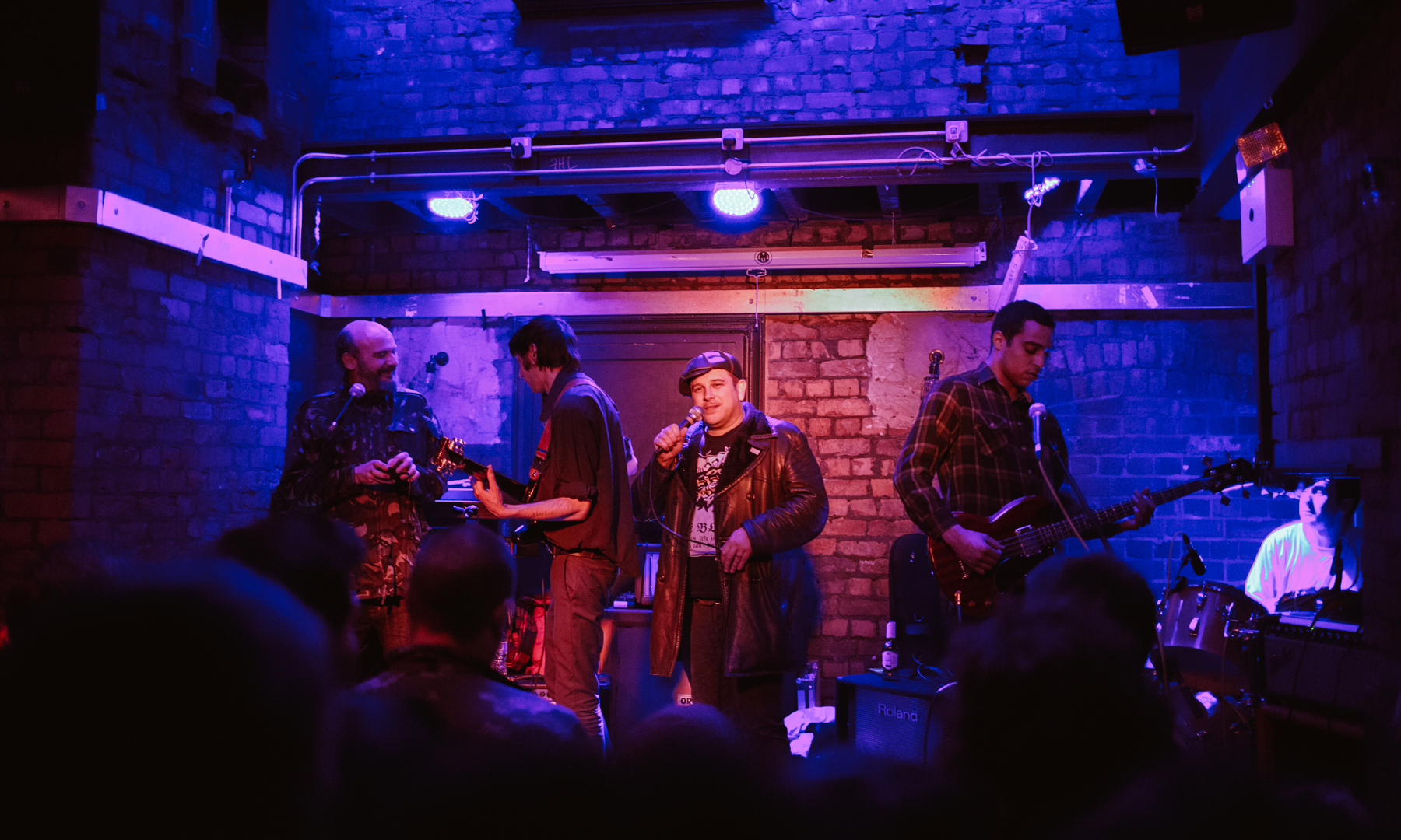 Together, they sound like a mutant hybrid of Butthole Surfers and Funkadelic. This translates to a wild live show where guitars buzz like pneumatic drills over melodic lines varying from soul-pop to discordant mayhem. To get a sense of how a band who rarely rehearse and often get kicked out of their own gigs operate, I’ve tagged along with them for a day in Salford, in Greater Manchester. They go from the pub to their radio session to a gig later that evening, buzzing on acid all the while (which it takes me a minute to realise). Along the way, we find the time to talk about the new material you’ll soon be able to hear on their upcoming album, Whale City, and what particular itch this band scratches for musicians who already clearly have other creative outlets.