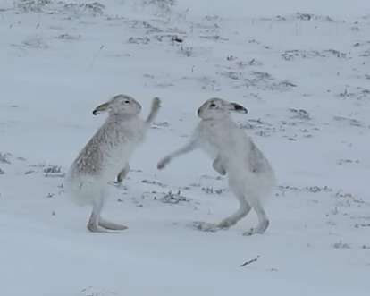 It looks like a petty slap-fight but the battle is much more dramatic: A female hare fighting it out with her male suitors, to judge which will be her worthy mate.
