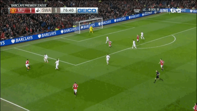 Manchester United took a 2-1 lead over Swansea in the 77th minute thanks to Anthony Martial and delightful bit of skill from Wayne Rooney. Martial, who scored United’s first goal on a strong header, made a nice run to the goal line and then sent in the cross as Rooney went to the front of the goal. It was actually behind Rooney, so he just flicked it backwards with his heel, redirecting past a helpless Lukasz Fabianski.