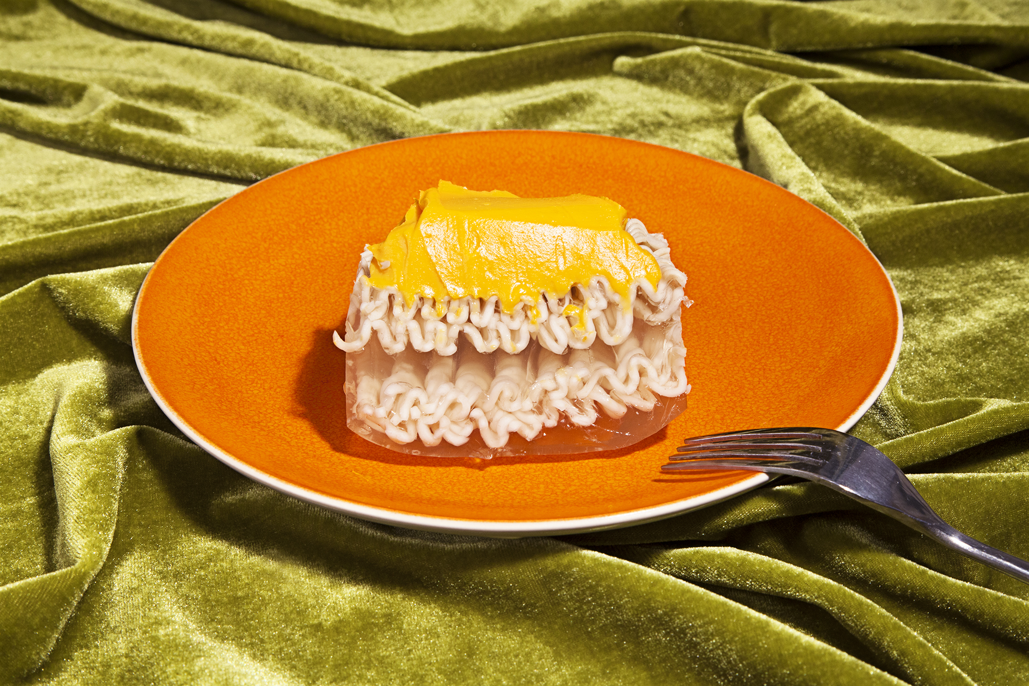 Rather than add to this miserable pile, we decided to go in the opposite direction and asked our friends and acquaintances to share their worst bachelor(ette) meals with us so that photography collaboration, LAZY MOM (Josie Keefe and Phyllis Ma), could style their gross grub into works of art. Taking inspiration from atomic age homemaker cookbooks, LAZY MOM shows us that with a little TLC, even our darkest indulgences have the potential to be beautiful.