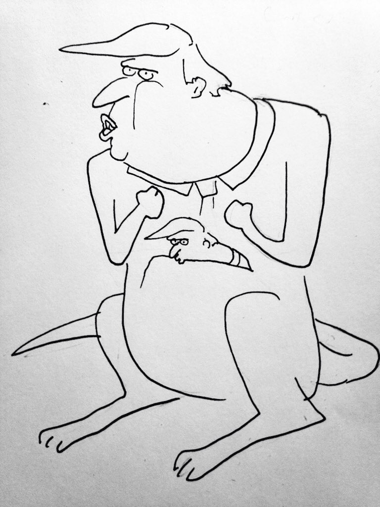 Tommy: I was really digging this, so I just started drawing Donald Trump as a kangaroo with a Donald Trump kangaroo baby in his pouch.