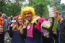 Over in Kreuzberg, 160 bands played MyFest for a packed crowd of 40,000 attendees. The best part? The YAAM reggae truck dressed in Christmas lights. From what I saw in the evening, locals set up roving shopping carts selling cupcakes, Jell-O shots, and beer in plastic cups. The rest were just chilling. Some questioned whether Berlin still has its political edge, because the city’s first May Day riot back, in 1987, was a bedlam of tear gas and overturned police cars. Now, it’s a festival. Many didn’t care; most wanted to make a buck by selling whatever they could. By 10 PM, I strolled past Café Luzia and watched all the people whose faces were covered in glitter. One crowd fight was stopped, but there was mostly just techno.