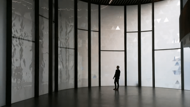 The chaotic confluence of the elements comes together to create a spontaneous interplay of light and shadow in Simon Heijden‘s latest installation, Shade. The inaugural recipient of the NOW Gallery London‘s NOW Commission, Shade features modular glass panes controlled by the room-sized installation’s walls, while an intelligent layer of electronic skin responds to wind gusts outside the building. Each module cycles between opaqueness and transparency, resulting in a constantly changing kaleidoscope of sunbeams cascading onto the floor and adapting to nature’s fancy.