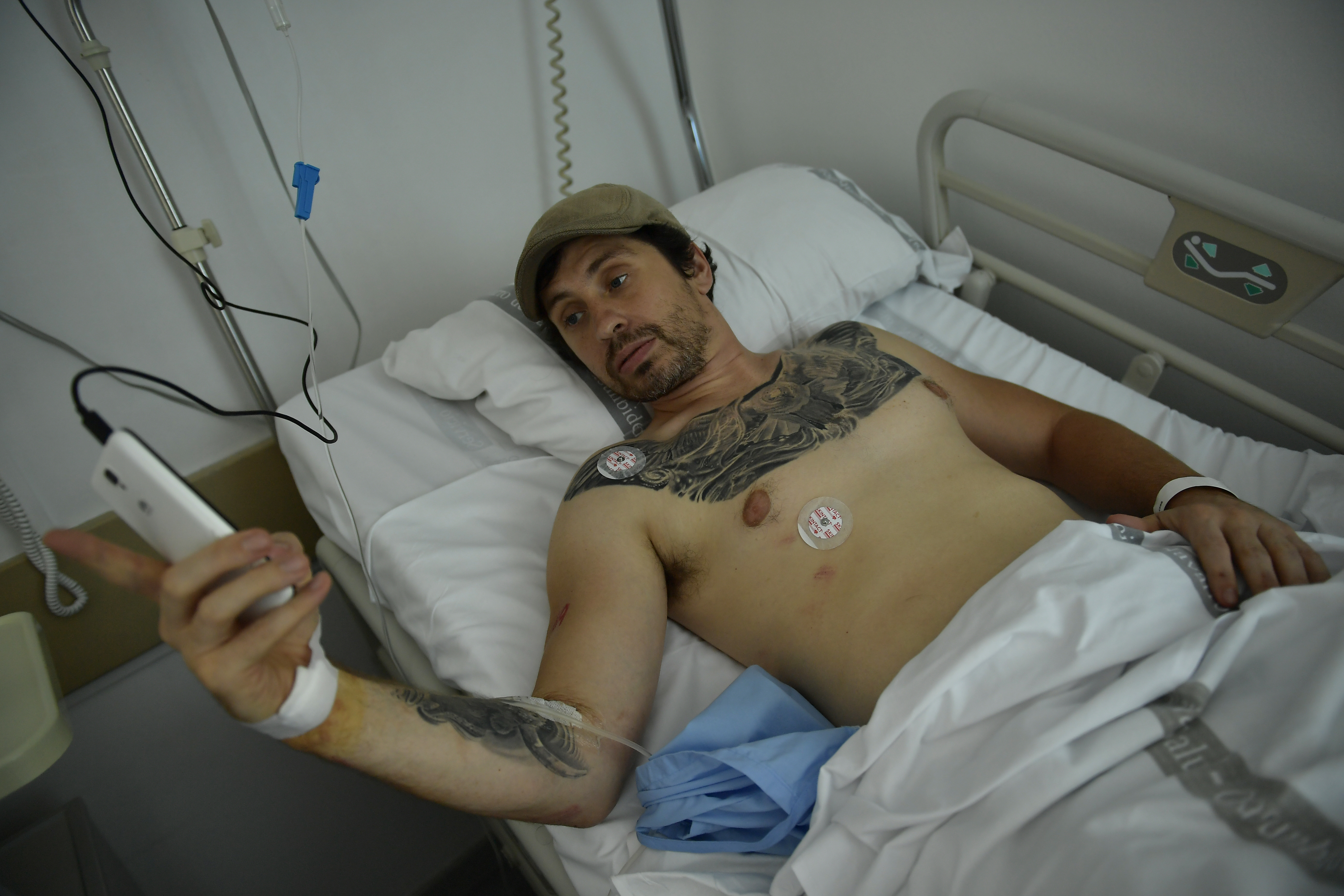 The horn came close but luckily didn’t perforate my anus. (I know this because the doctors checked several uncomfortable times.) Red Cross medics rushed me to the hospital, where they injected me with morphine, put me on IV antibiotics, did minor surgery to clean the wound, and stuck a tube in it attached to a drain capsule about the size and shape of half a roll of quarters.