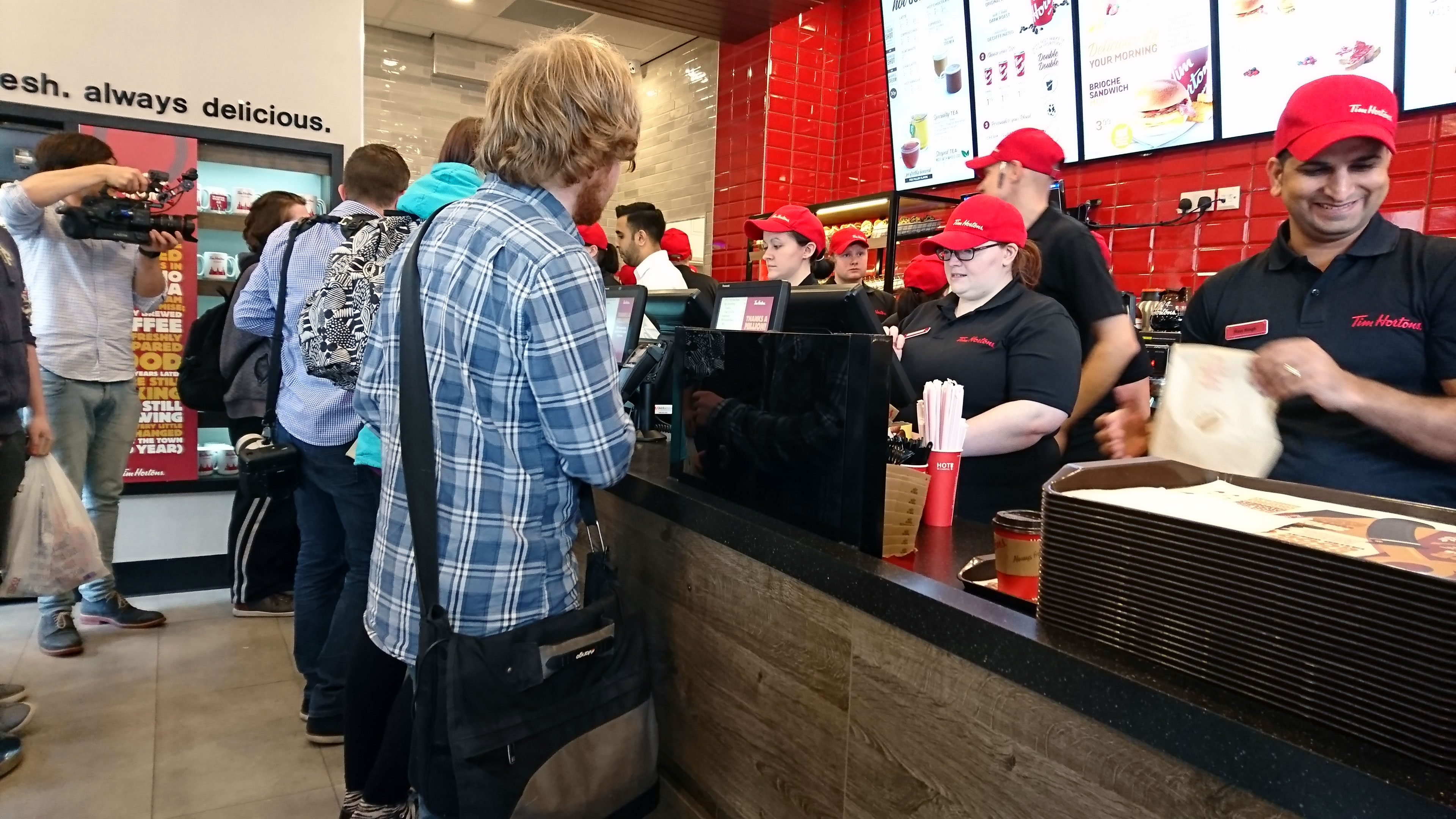 In the queue, I hear more than a few Canadian accents. One expat tells me: “I’m here because this is Hortons! It’s a bit of home come all the way to Glasgow, so I need to check if it lives up.” Before I can catch his name, the ribbon is cut and he rushes inside with the rest of the crowd. The store promised free breakfasts for the first 100 people through the door.