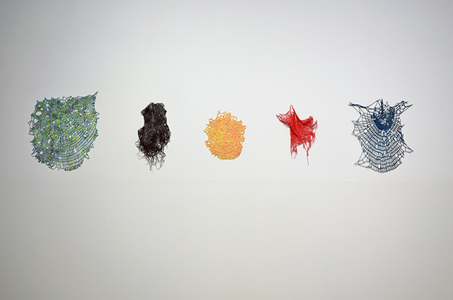 Each work in the exhibition is the result of an artistic “collaboration” between a human and an animal, ranging from honeybees and spiders to a sapsucker bird. Different than art that depicts or uses animals in some way—Damien Hirst’s shark in formaldehyde or Jeff Koons’ countless Balloon Dog sculptures—the works in Animal Intent literally incorporate interventions and creations made by animals as part of each work’s material or process.