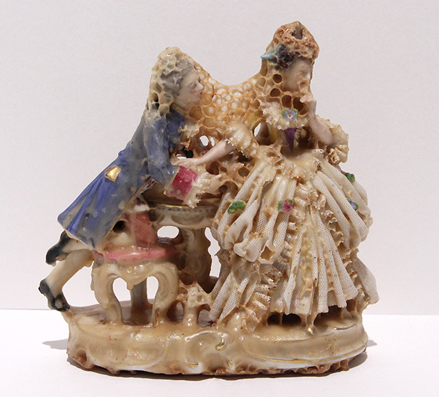 Rather than putting honey into a mold to make a cool sculpture, artist Aganetha Dyck takes a sculpture of her own and then literally places it in a beehive for the colony to interact with. The process, which she has perfected over 20 years, results in stunning combinations of porcelain, beeswax, and honeycomb. Alison Reiko Loader and Christopher Plenzich’s Caterpillar Cartography involves the artists providing caterpillar larvae a piece of paper littered with charcoal dust, which the insects draw upon as they inch around on paper. Although one side conceptualizes the work and the other side executes it, both the humans and larvae in this situation are effectively artistic collaborators of equal stature.