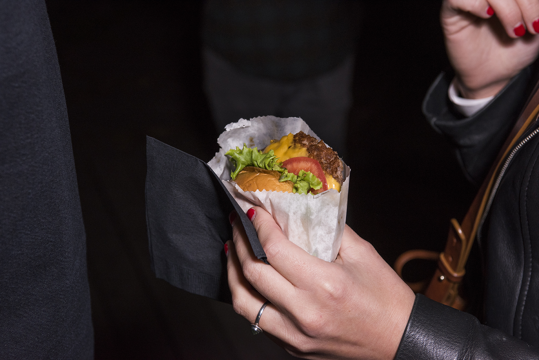 The offices were flooded with attendees, drinking cocktails and beer and pretty much ingesting all food possible—Frank Pinello’s pizza, a bomb smoked bologna and raclette sandwich from Erik Anderson, killer noodles from the Contra team, and a surprise mid-party drop from Shake Shack.