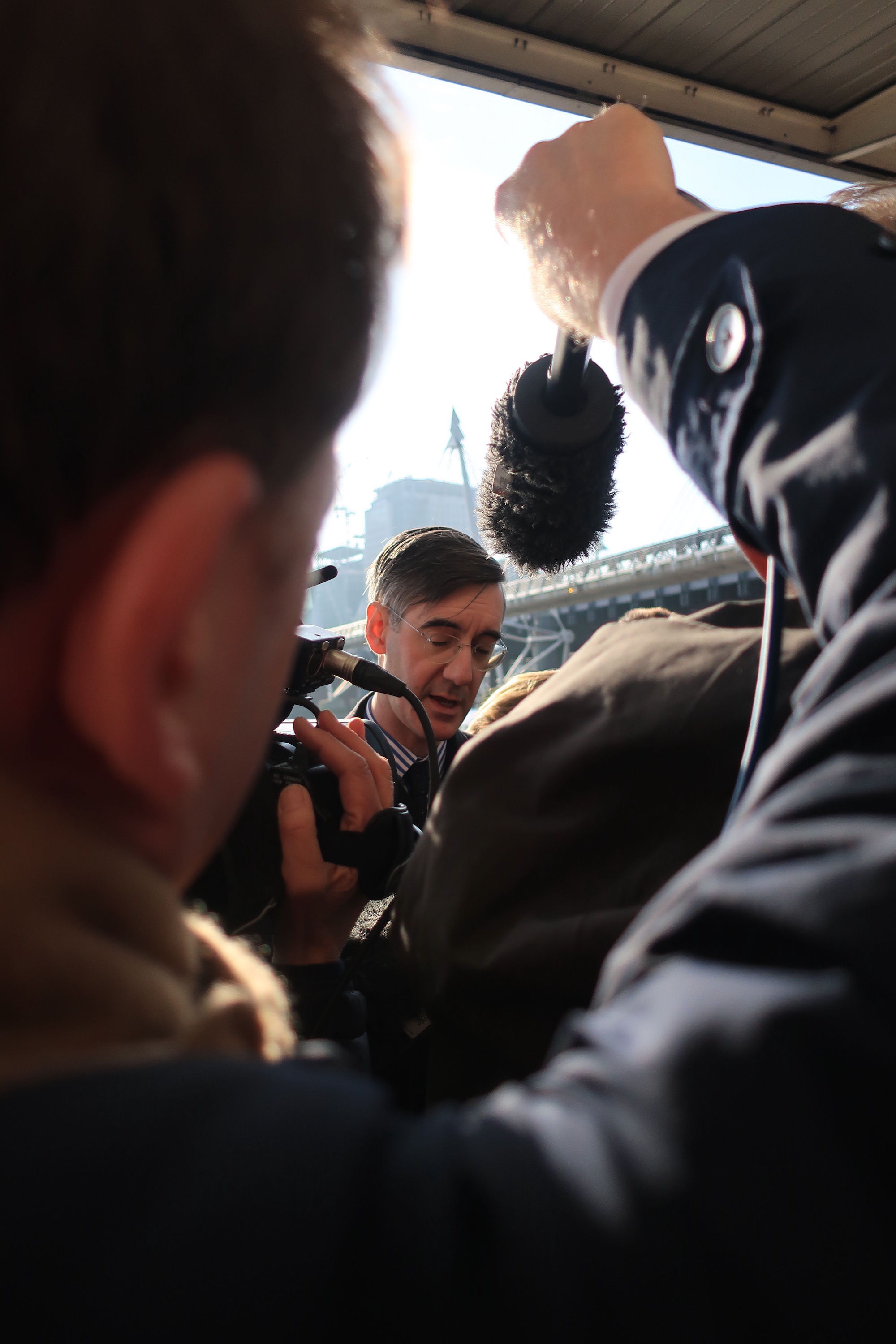 Evidently, I wasn’t the only one. A lively crowd of rubberneckers had turned up to snigger behind their hands. Above our heads, the Sky News chopper hovered, an Apocalypse Now soundtrack for Jacob Rees-Mogg, Brexit’s very own Captain Kurtz. We were treated to some light Common Fisheries Policy chit-chat. “One thing’s for sure,” said Rees-Mogg. “I won’t be flinging any fish myself.”