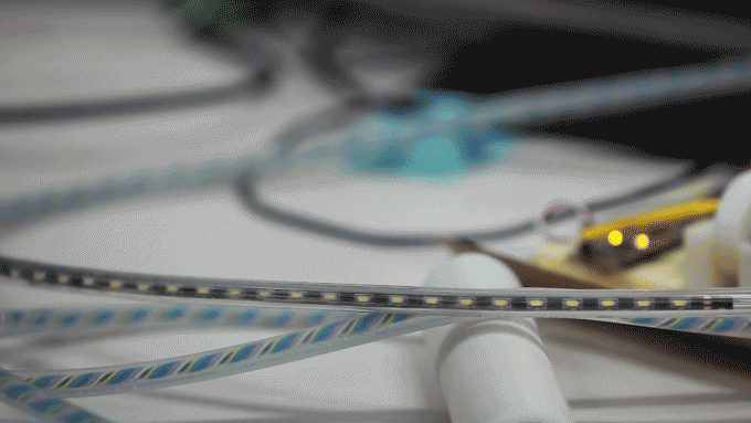 "Smart Rope makes the actual workout smarter—not just a passive monitoring wearable, but an active fitness device," the rope's Kickstarter explains. 23 LEDs embedded into their proprietary FPCB (flexible printed circuit board) design can display up to four digits, letting users keep track of everything from jump counts, to calories burned, to even interval traning. "As you jump, the LEDs display your progress right before your eyes. They’ll also illuminate as you power on and off the Smart Rope, and provide information about battery life." The tool even features a magnetic sensor—instead of a gyroscope—to provide more accurate realtime data, and connects to Tangram Factory's Smart Gym, an interactive smartphone training app, via Bluetooth 4.0.