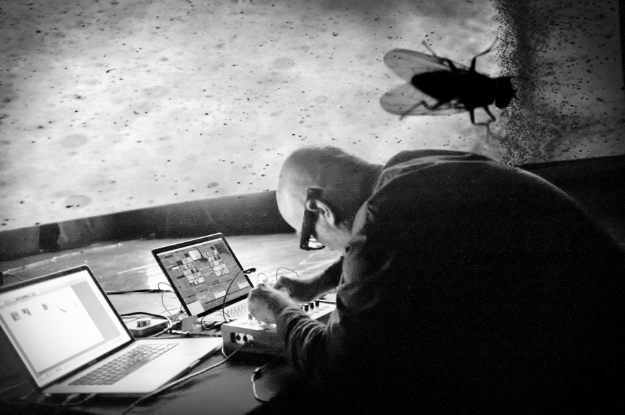 Images courtesy of the artistThose familiar with Herman Kolgen’s impressive artworks already recognize his universe: hybrid technical languages and unique aesthetics that give life to mesmerizing “audio-kinetic” pieces. But for everyone else, especially those in London or in Montreal this month, the internationally renowned multimedia artist will showcase four pieces that will perfectly illustrate the extent of his artistry. Starting on this Sunday May 18th, as part of the Alpha-ville Live in London, Dust and Inject, two of his most fascinating audiovisual performances, will be presented as an UK premiere.His work is first and foremost a deep audiovisual exploration into the particulate fibers that the artist offers up. Inspired by Dust Breeding (Elevage de Poussière), a famous photograph by legendary photographer Man Ray, Dust is a journey between harmony and chaos, where the scale of visual elements and the sonic intensity blur and erase all reference points. The viewer witnesses the effects of magnetism on the floating, pilling, and merging micro particles that end up creating highly complex and destabilizing imagery.