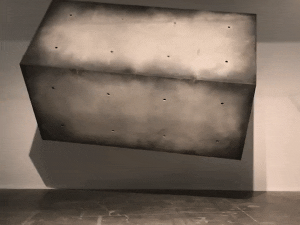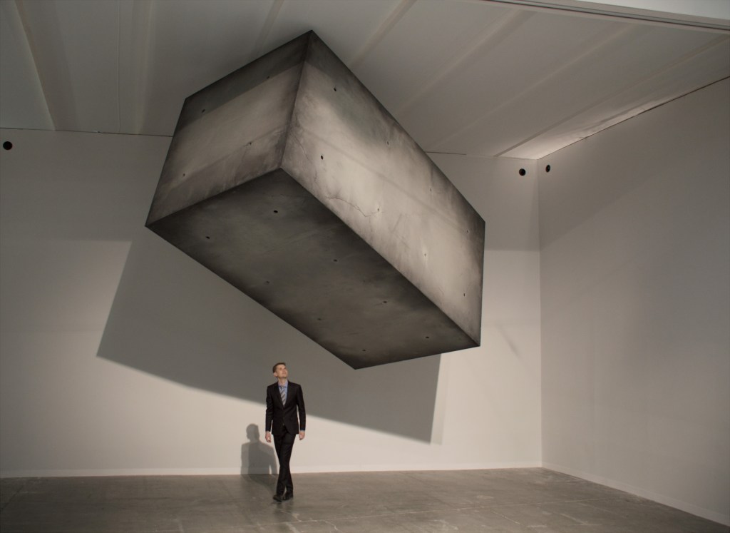 You might have seen a housefly, maybe even a Superfly, but I bet you’ve never ever seen a monolithic block of concrete fly. Set foot into The Armory Show‘s Pier 94 from the southern entrance, and that’s exactly what you’ll find hovering about 10 feet above head level.