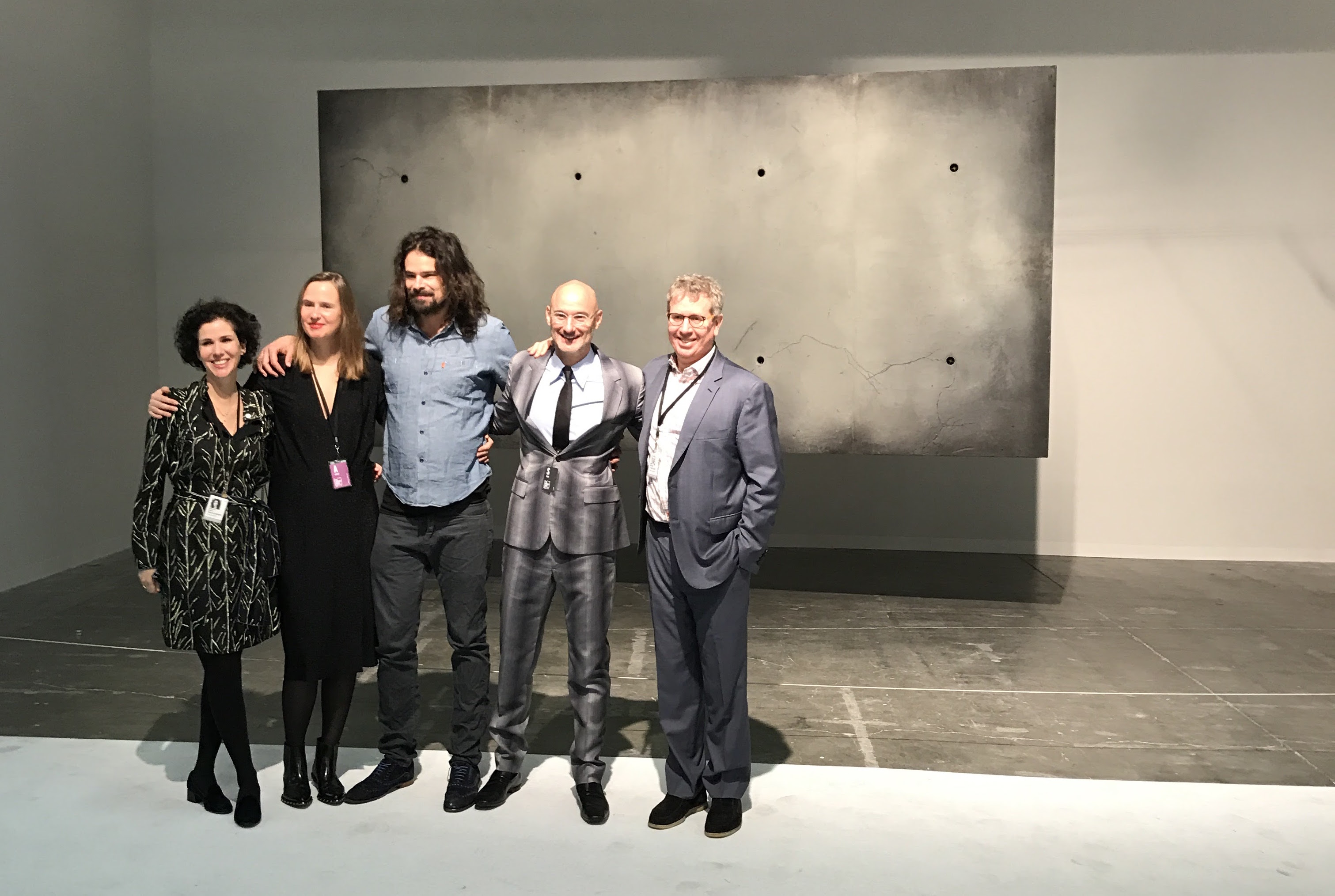 Representatives from Pace Gallery pose with Studio Drift’s Ralph Nauta and Lonneke Gordijn, Armory Show director Benjamin Genocchio, and Platform curator Eric Shiner. Photo by the author