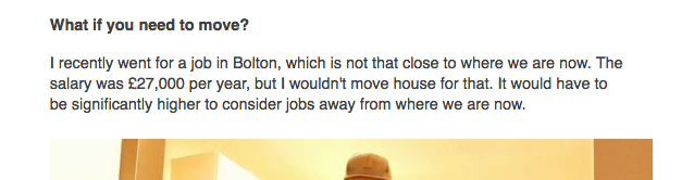 I for one can’t imagine Bolton being a far-exotic realm too absurd to countenance moving to, but yeah, once you’ve bought your house – pale, anaemic bricks; a smooth grey-blue tarmac driveway; a cul-de-sac similarly full of 23-year-old couples in F+F jeans; green turf; stairs and a hallway; and four rooms and no soul – you are, sadly, condemned to wherever you live now, forever, because your house is everything and everything is your house. Can you imagine selling up and moving somewhere else? No. Of course not. Settle deep and quietly into your prison, and sit on the sofa you bought, and drink a cup of tea and watch Corrie. This is the rest of your life. Forever and ever and ever. And ever.